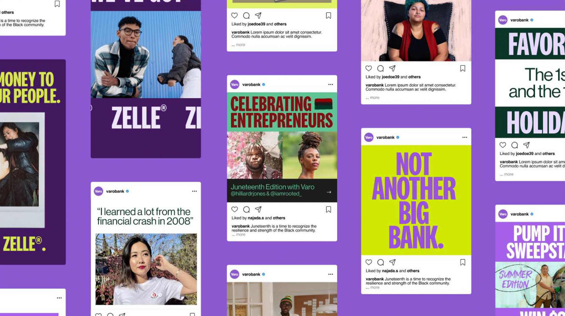 After becoming the first fintech company to receive a banking charter, we recognized the need for a brand that not only establishes Varo as a trustworthy and best-in-class service but also sets us apart from the competition in a distinctive way. We partnered with The New Company on the overall visual system and developed an extensive brand library in-house, allowing for quick plug-and-play assets.